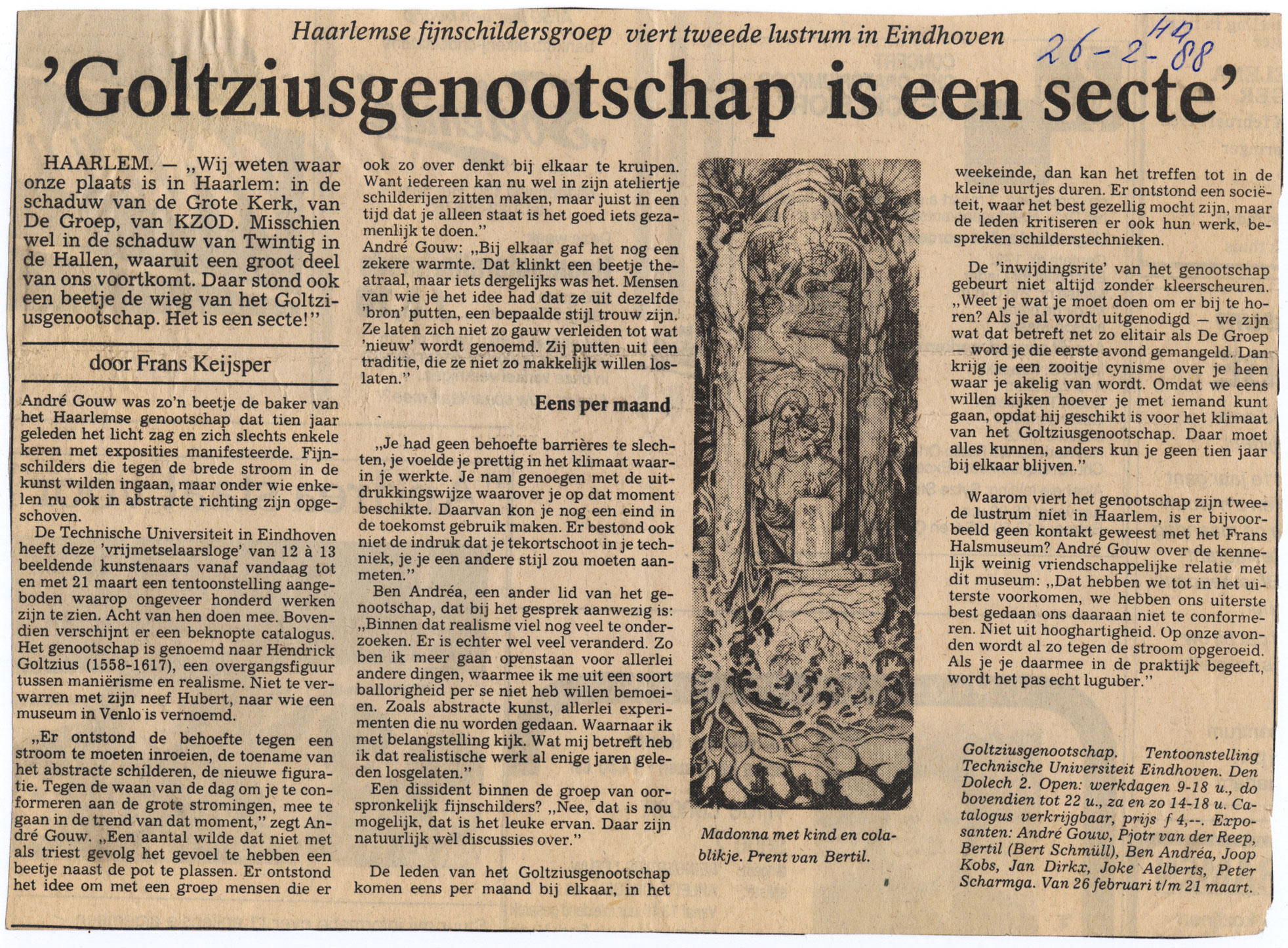 Goltzius Genootschap in Haarlems Dagblad 26 februari 1988