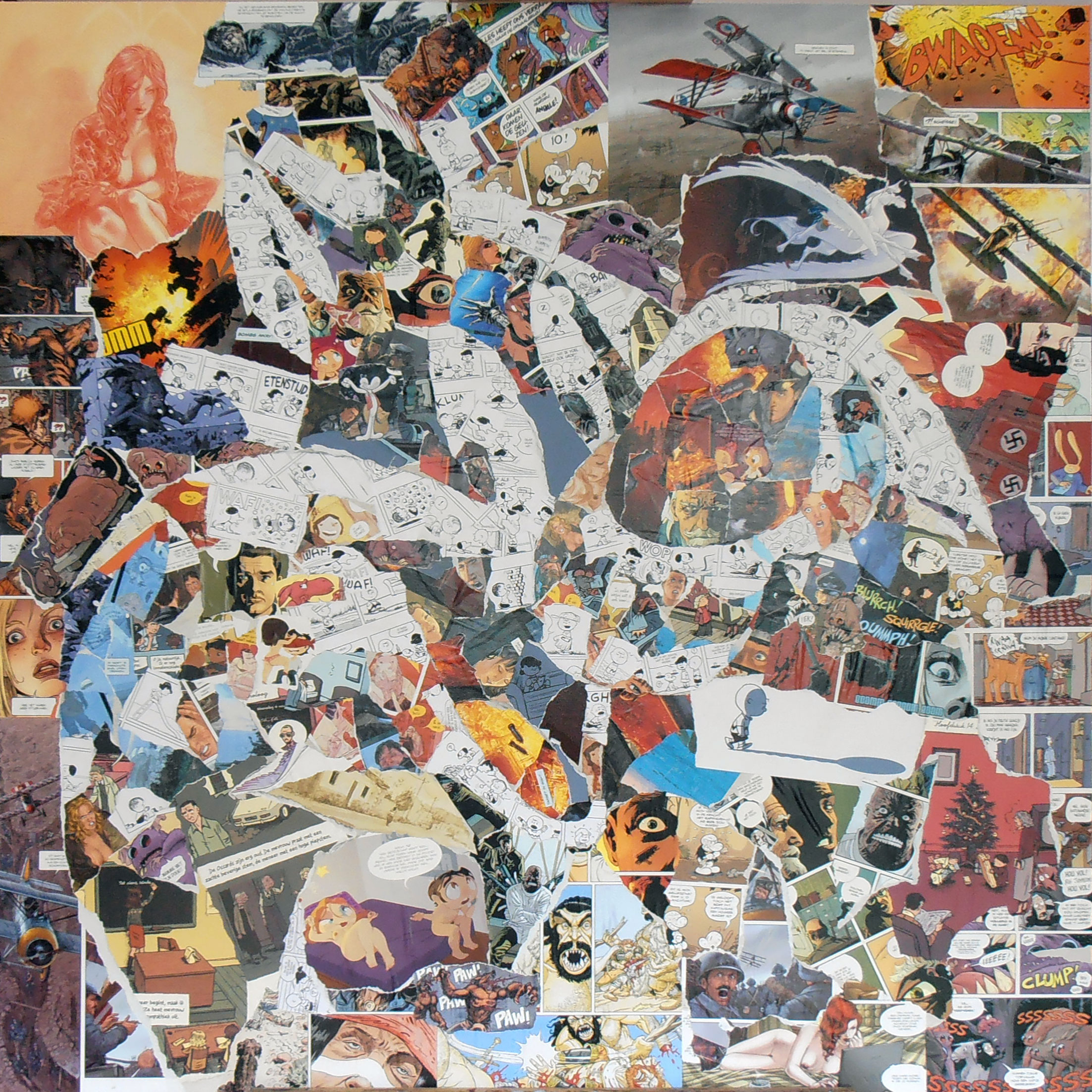 Na uren uitzoek-, scheur- en plakwerk is de collage, mijn bijdrage voor de Kunstlijn 2013 voor Stripzaak Silvester, klaar.